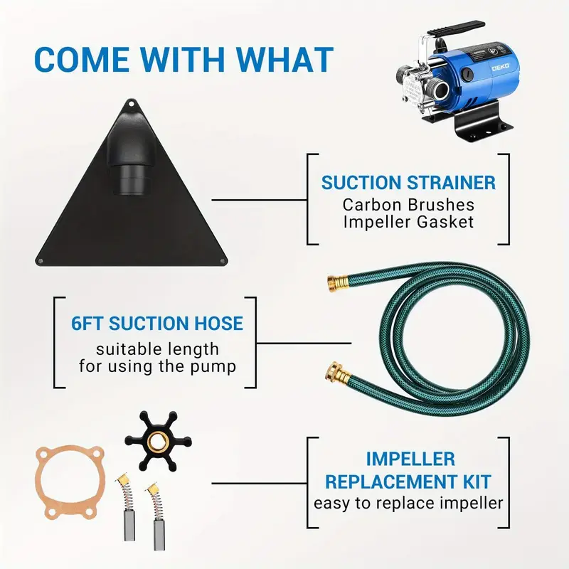 Con una capacidad de flujo de hasta 330 galones por hora (GPH), la bomba DEKOPRO garantiza una transferencia rápida y confiable del agua. Ya sea que necesites mover agua entre contenedores, vaciar una piscina inflable, regar el jardín o lavar el coche, esta herramienta lo hace todo de manera eficiente y sin complicaciones.