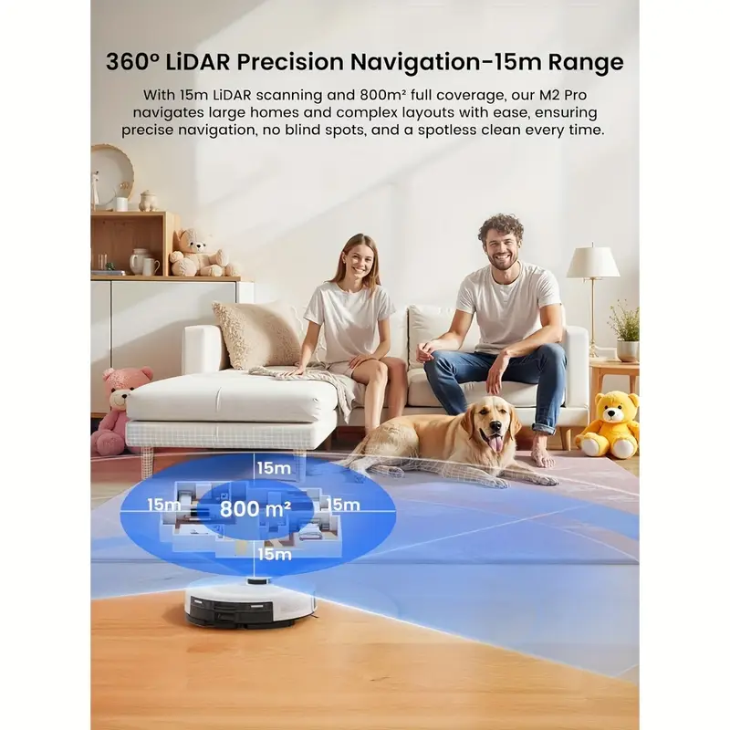 Con el Lefant M2 Pro, tendrás un robot aspirador que no solo limpia, sino que piensa, planea y se adapta a tus necesidades. Gracias a sus múltiples sensores, navegación láser, evitación inteligente de objetos y gran capacidad de succión, te aseguras un entorno limpio todos los días con solo pulsar un botón.